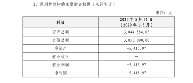 在公告中,KaiYun网页版·网站官网-开云(中国)科技披露了深圳智慧树的主要财务数据(未经审计),如下图所示。